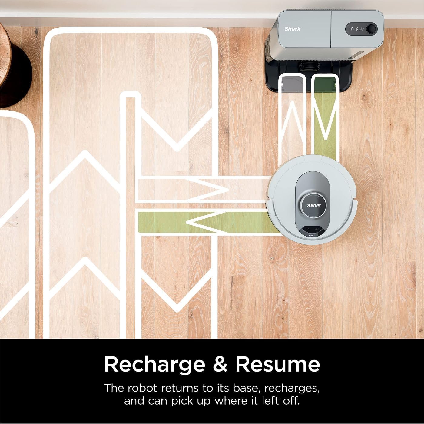EXTENDED RUNTIME: With Recharge and Resume, the robot will return to the dock, recharge, and can pick up where it left off.