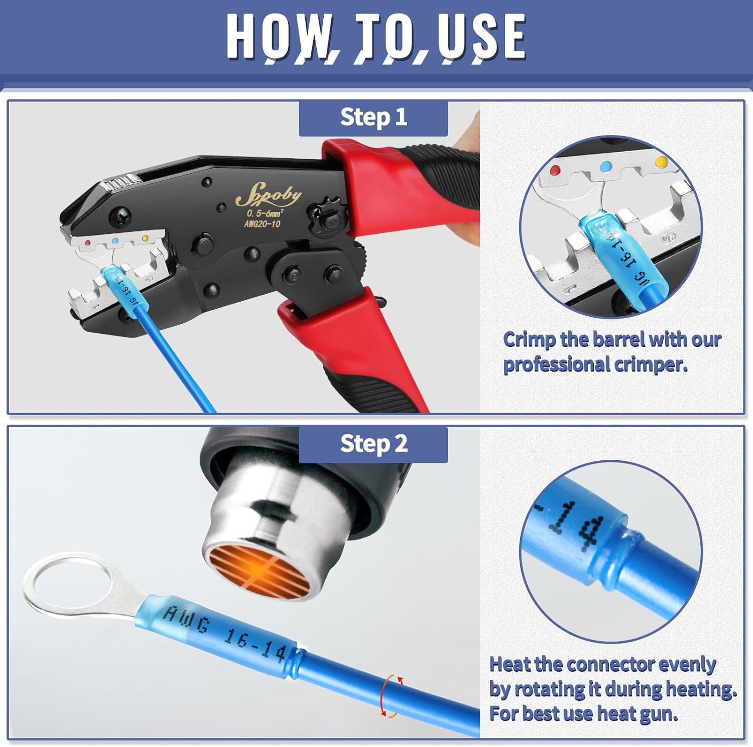 PROFESSIONAL CRIMPING TOOL: This hand crimper has efficient ratcheting mechanism and professional grade crimping die for proper rock-solid crimps every time. This crimping tool works best with heat shrink connectors.