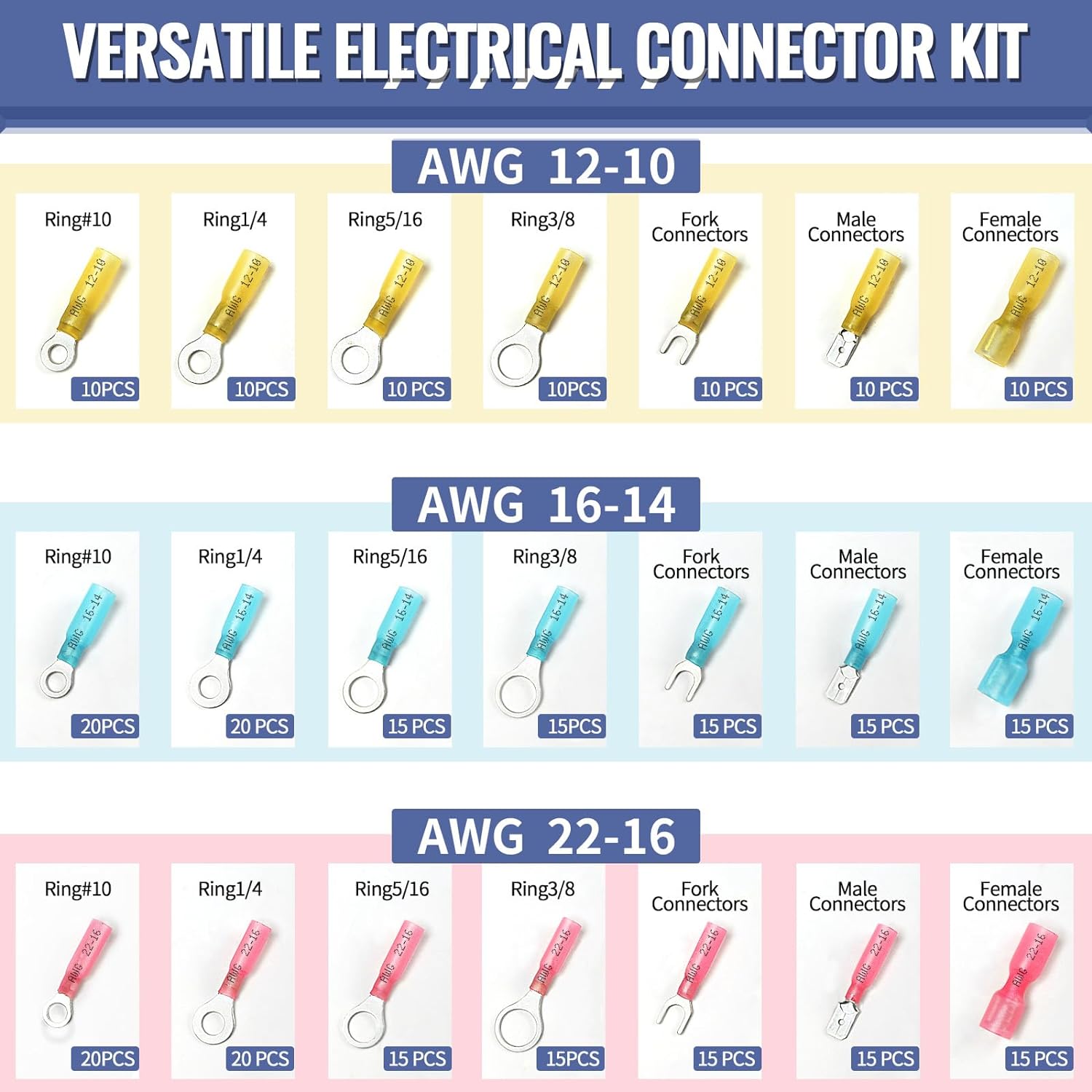 RELIABLE CONNECTION: Adhesive lined inside the 3:1 heat shrink connector will exude hot melt adhesive when evenly heated, shrinks quickly and adheres to wire insulation. Guarantees good environmental sealing, waterproof and wear-resistant.