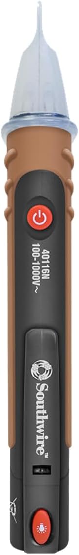 Southwire 40116N AC non-contact voltage (NCV) pen tester is a valuable addition to your tool bag. Use it whenever you perform electrical work to identify where voltage is present. Detects voltage in wires, light switches, circuit breakers, outlets and light fixtures. Press the On button and the detection tip glows green. Move the detector tip close to the electrical wire or device being tested. If voltage is detected, the detection tip will change from green to red and begin flashing. The NCV will also beep loudly. The 40116N can also be inserted directly into electrical outlets to verify operation. All Southwire non-contact voltage detectors come with a built-in focused LED flashlight so you can illuminate dark areas. Auto power off feature helps conserve battery power. As an added safety feature, the 40116N has a low-battery self test which periodically checks the condition of the batteries. If battery voltage becomes too low, the self-test circuit turn off the non-contact voltage detector until the batteries are replaced. The 40116N is UL listed. Not designed for use with Tamper Resistant (TR) outlets.