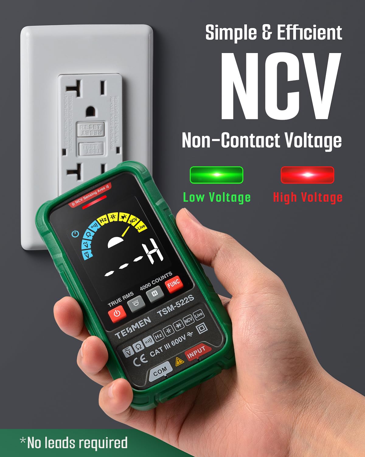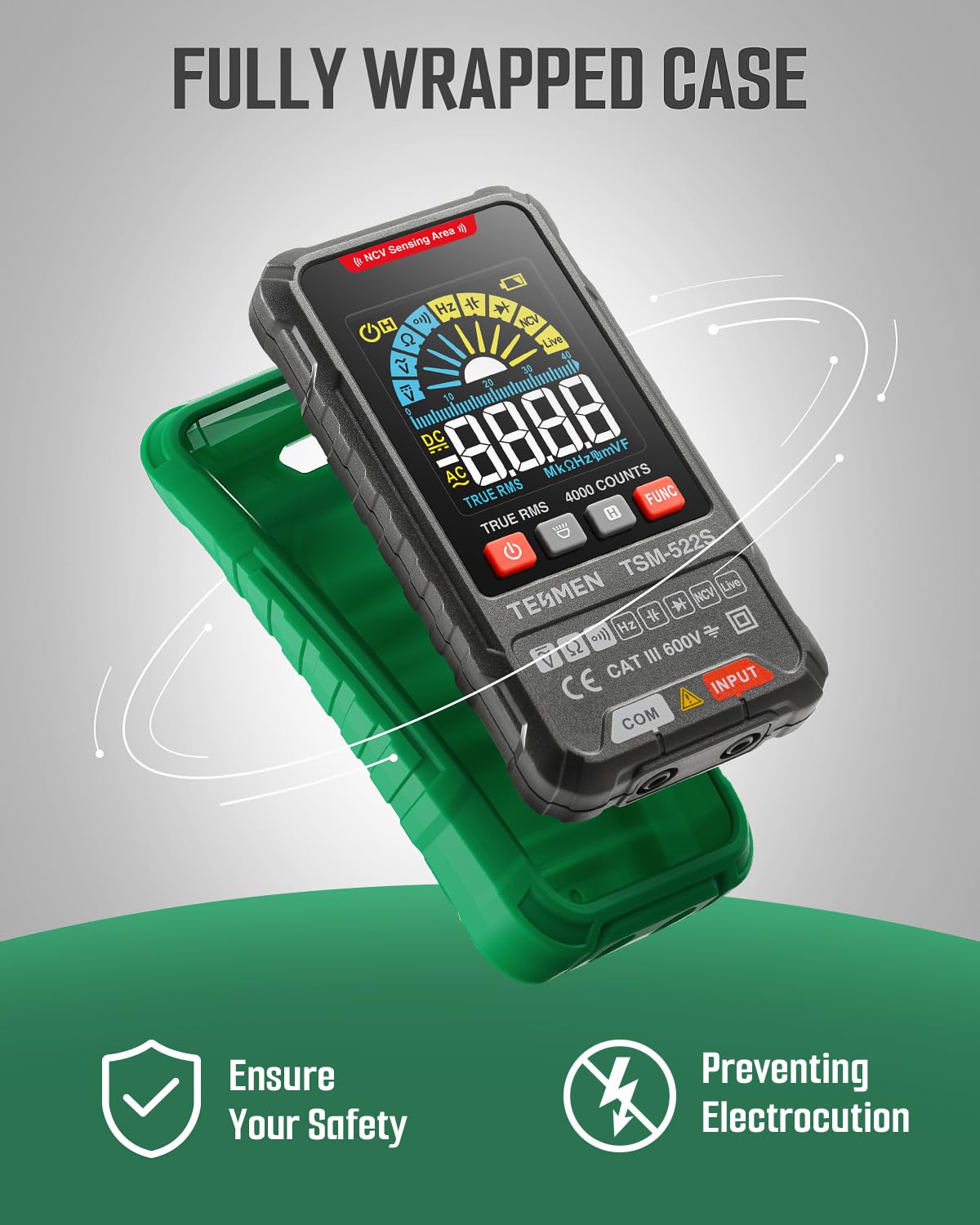 TESMEN TSM-522S Digital Multimeter, TRMS 4000 Counts Voltage Tester, Voltmeter Measures AC/DC Voltage, Capacitance, NCV, Diode, Resistance, Continuity, Frequency & Live Wire for Household, DIY-Green