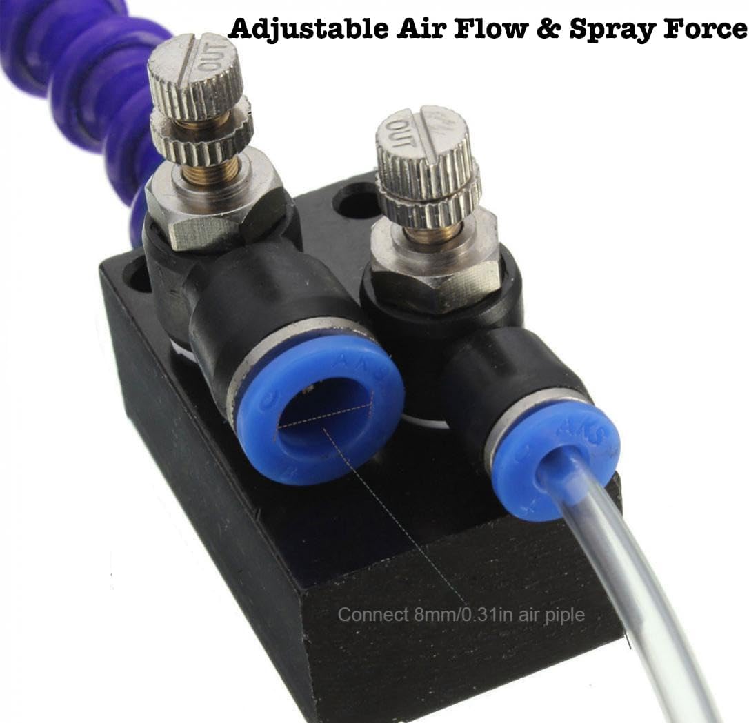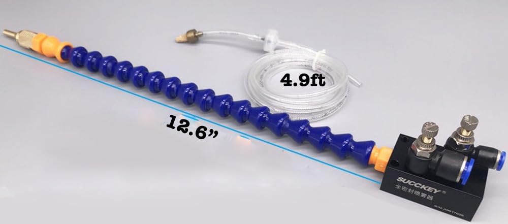 Upgraded Mist Coolant Lubrication Spray System, Mist Spray System with Check Valve + 12.6” Flexible Pipe, Metalworking Metal Cutting Cooling System for Drill Engraving Milling CNC Machines