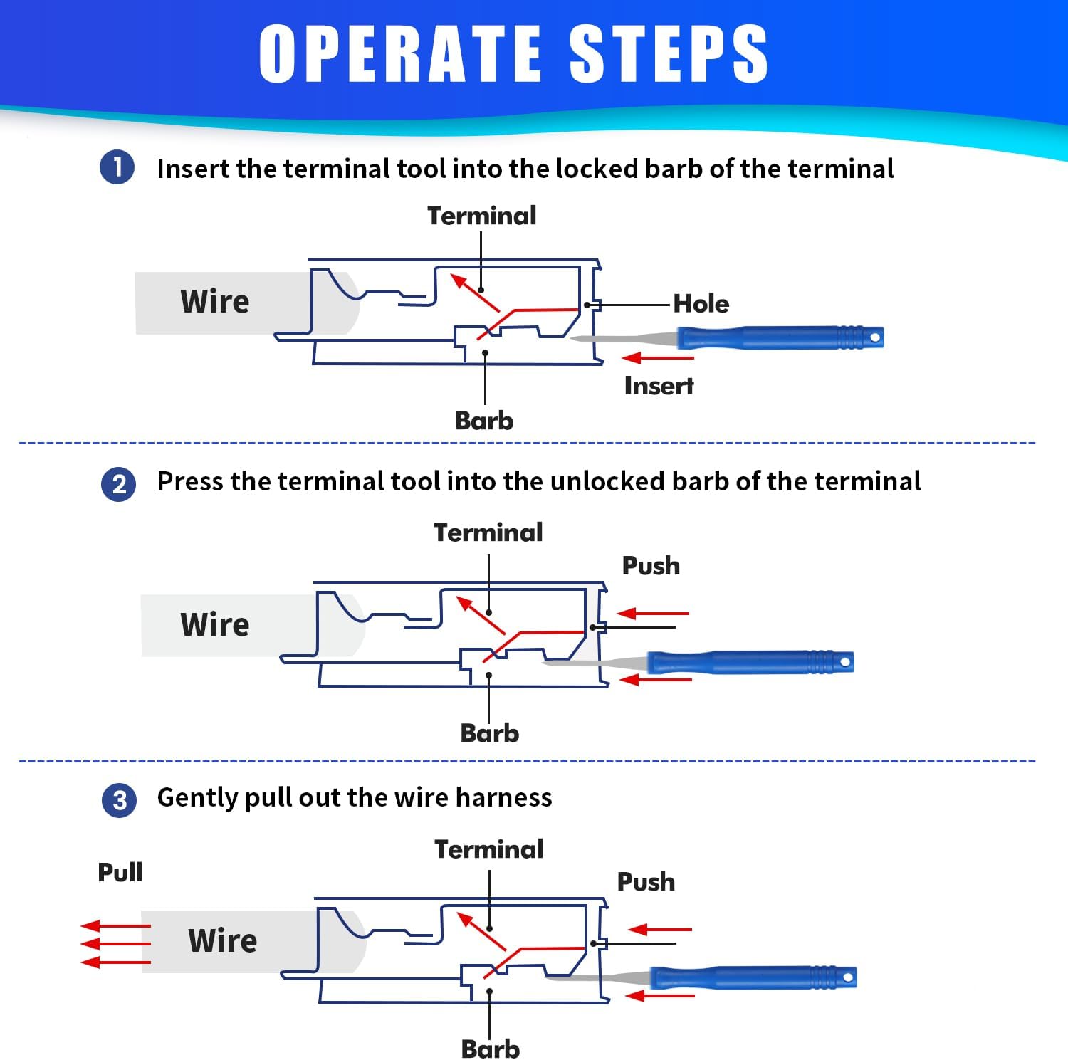 [Easy and Damage-Free Usage]: Our wire terminal removal tool allows terminals to be easily removed from the harness connector without causing any damage to the line, preserving the factory original harness. An essential tool for hassle-free repinning of automotive wiring!