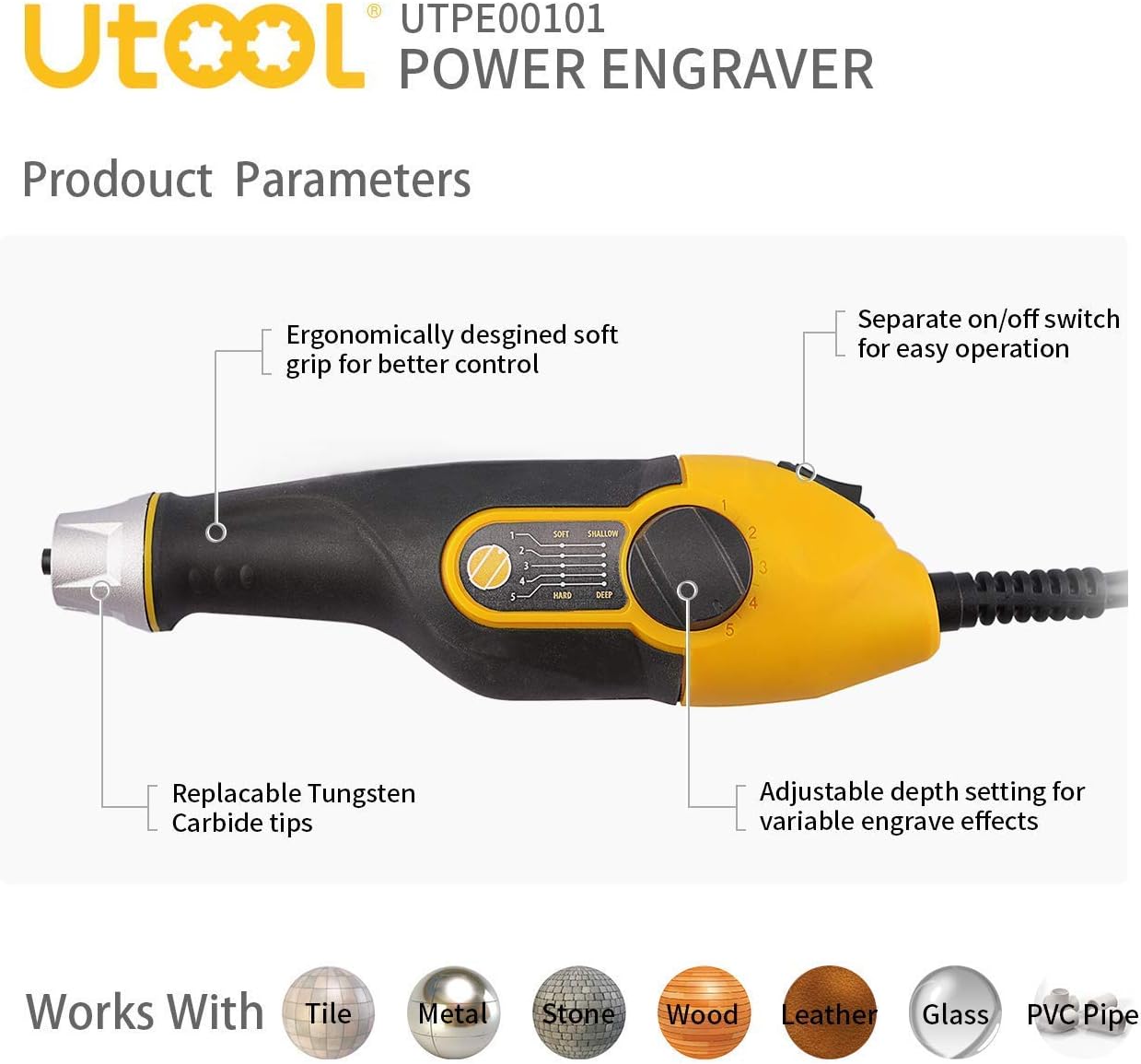 đ§ă5 Depth Adjustment 4 Tungsten TipsăThe engraver helps you tackle your masterpiece or family gift with multiple depthspeed adjustments by simply turn the dial. 4 genuine tungsten carbide tips guarantees smooth stable long lasting performance.