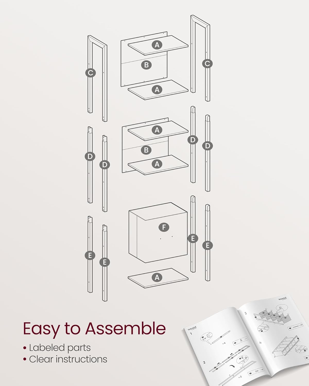 [Hassle-Free Assembly] Easy-to-follow instructions and marked parts make assembling this 5-tier tall bookshelf straightforward and simple. You’ll be able to organize your books in no time