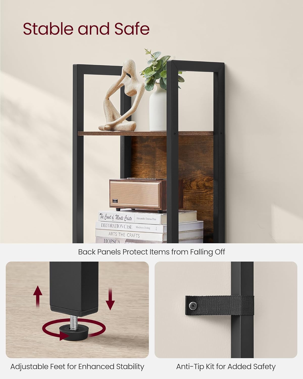 [Sturdy and Stable] High-quality panels supported by a sturdy steel frame create a robust book shelf that can support up to 44 lb. The adjustable feet further enhance its overall stability