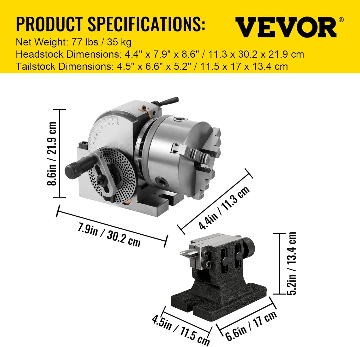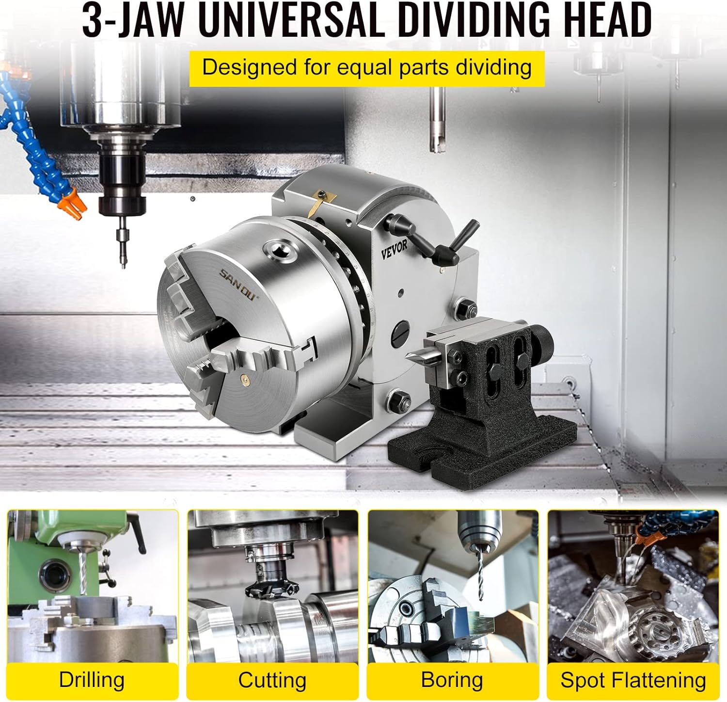 Vevor Dividing Head BS-1 Dividing Head Set 6″ 3-jaw Chuck Semi Universal Milling Set with 6″ Chuck+Tailstock+Dividing Plates for Milling Grinding Drilling Machine – Amazon.com