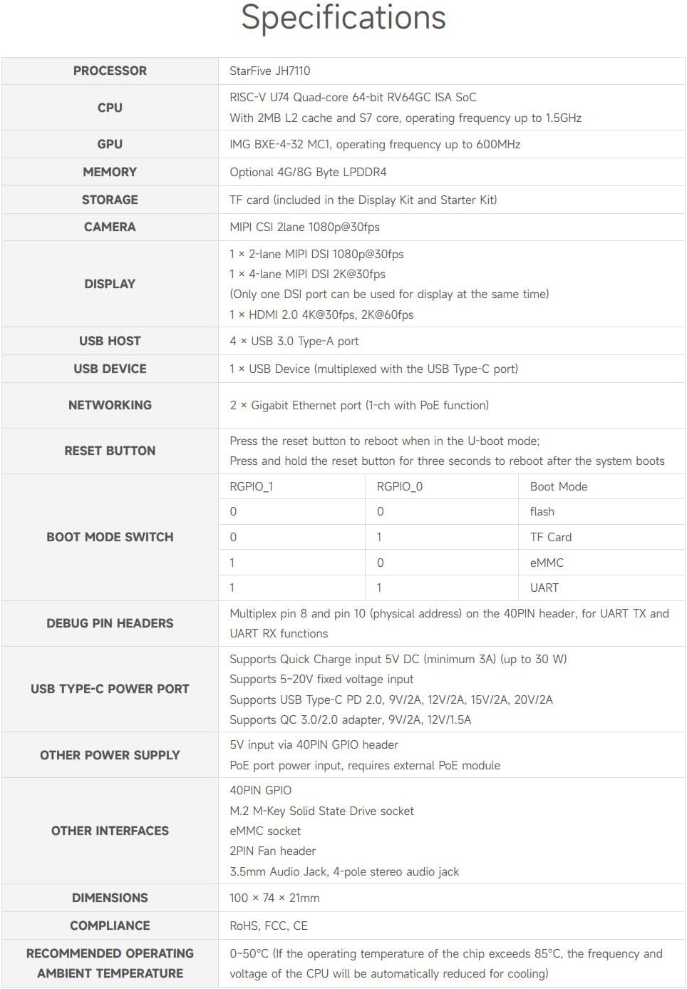 Onboard RV64GC-ISA Quad-Core 64-Bit SoC, Operating Frequency Up To 1.5GHz. Compatible with OpenCL 3.0/OpenGL ES 3.2/Vulkan 1.2