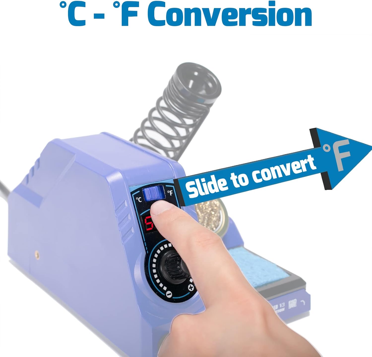 You can toggle the digital display’s temperature unit via the toggle button on the station. This way, you can follow soldering tutorial taught in both °C or °F.