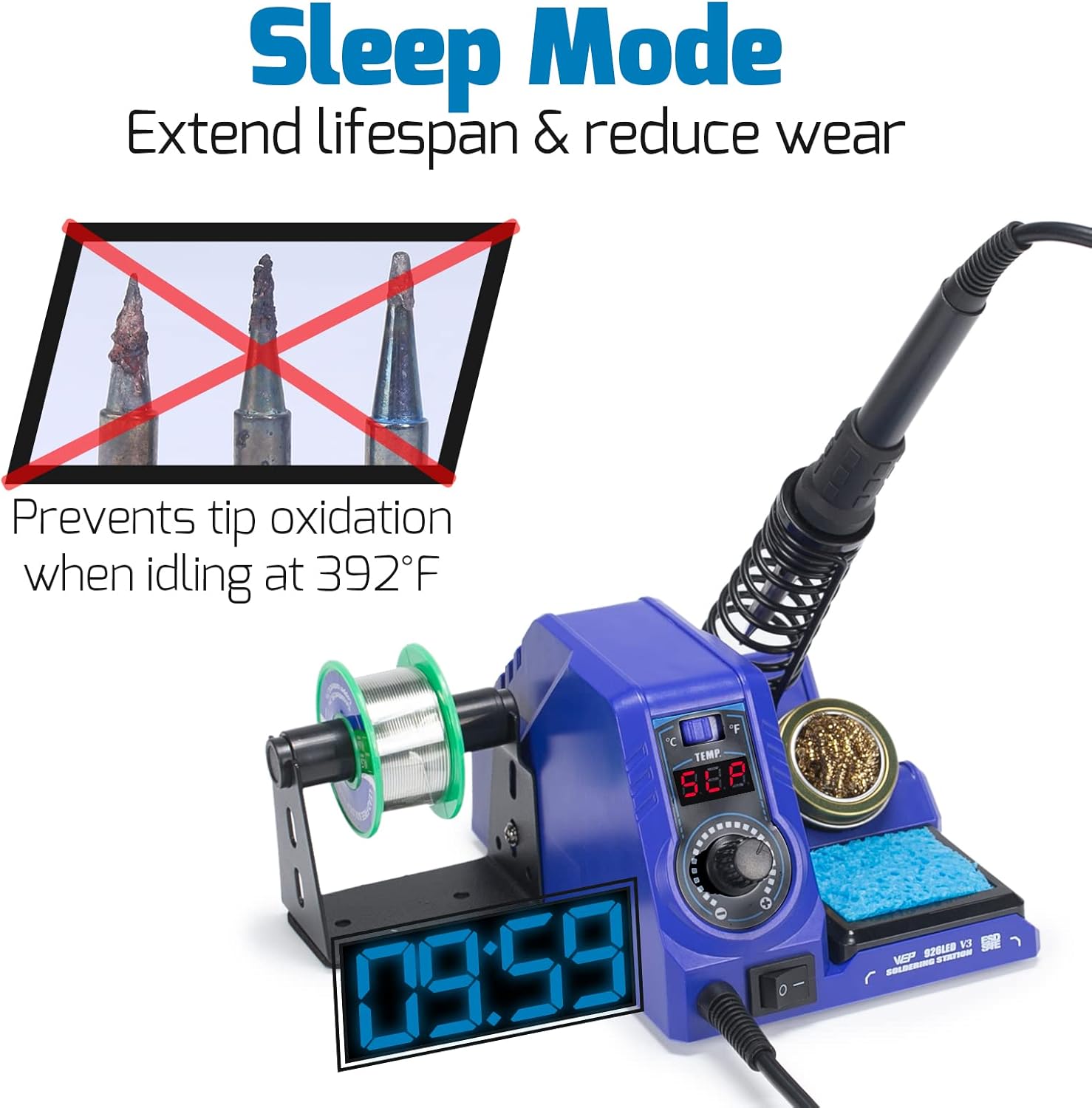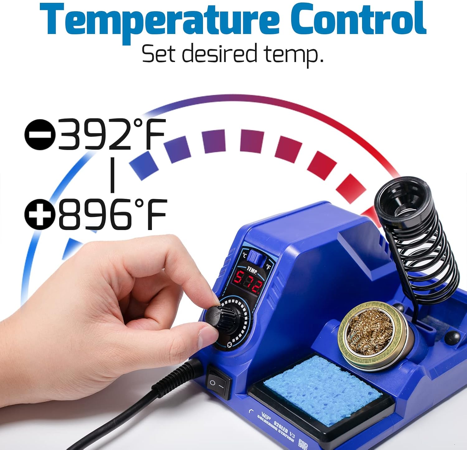 Compact: Unlike other soldering stations, the WEP 926LED V3 integrates the soldering iron holder directly onto the station’s body. This is great for users who have limited desk space, but is still considering soldering as a hobby. Not only does our soldering station save space, the holder is also built with highly temperature-resistant material to ensure safe storage.