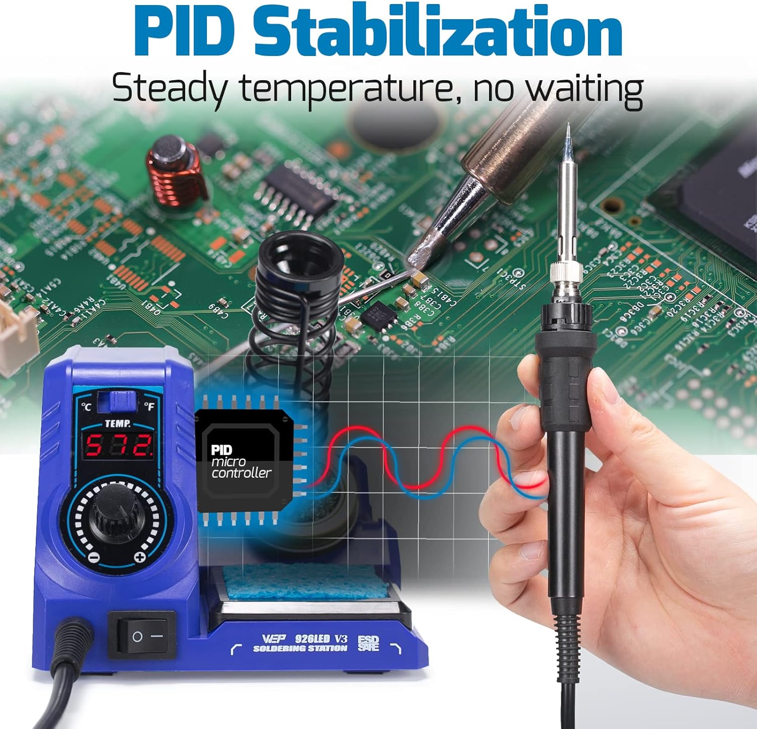 The PID chip stabilizes the temperature in real-time to make sure you don’t have to wait in between every solder joint.