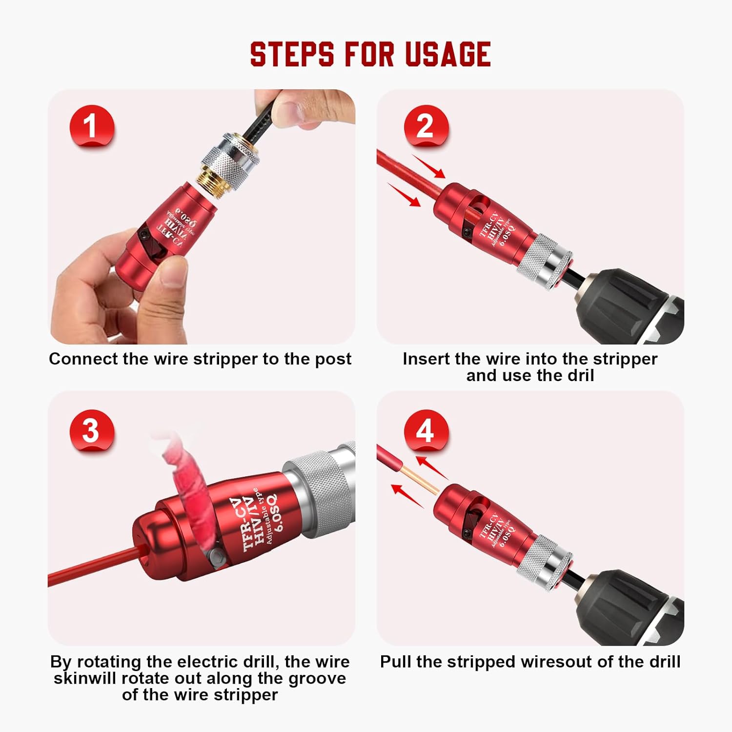 【2024 Electric Wire Stripper】The cutting-edge wire stripper tool set of 2024: Say goodbye to tedious manual work and embrace the efficiency of modern tools with this wire stripper machine, which can be combined with a hand electric drill or other electric tools to achieve quick and efficient wire stripping. The wire stripper for drill is suitable for 2.5/4/6 mm² cable, ensuring a reliable and efficient solution to your wire-stripping needs.