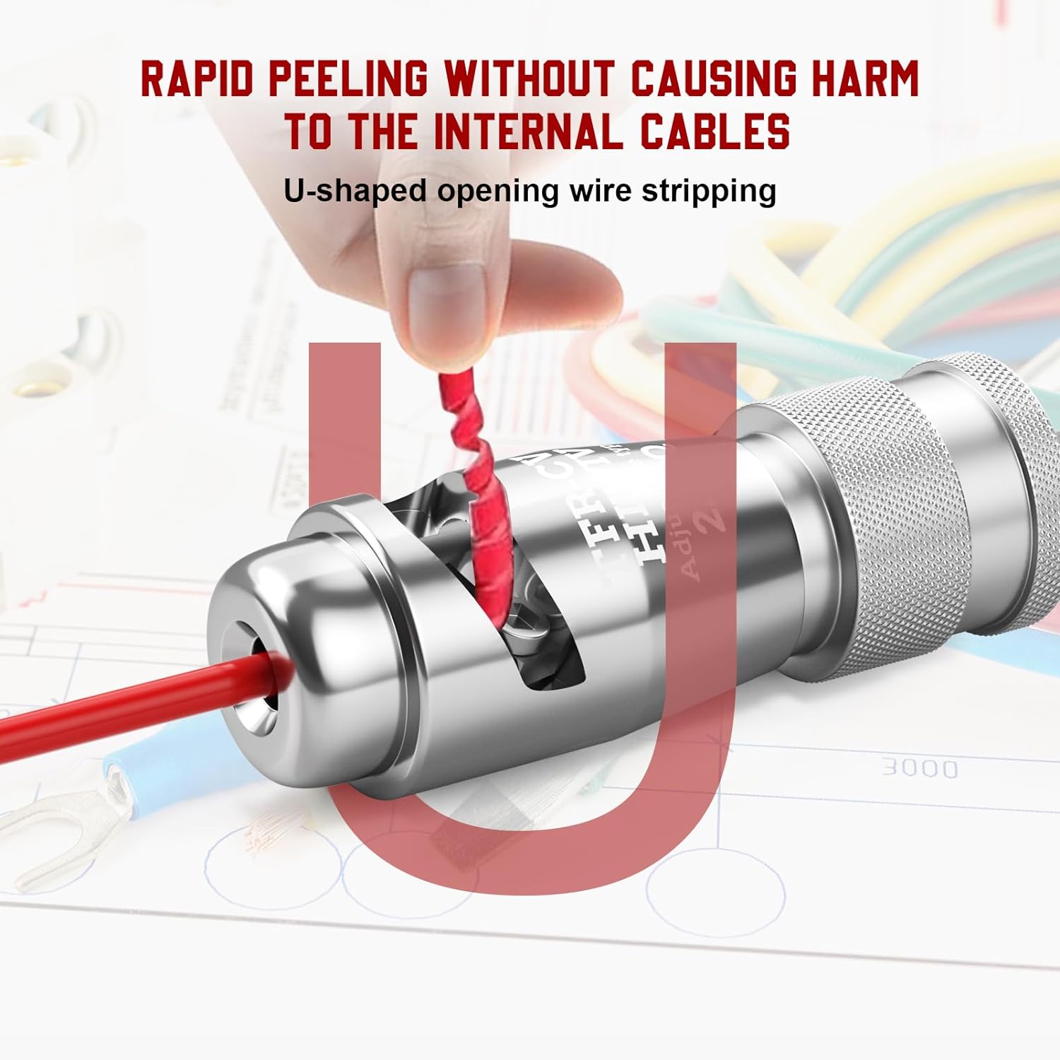 【Electrician’s Tool Set】 With its ability to rotate the wire shell out along the groove, this tool provides a significant improvement in work efficiency compared to traditional manual wire strippers. Maximize your work efficiency with this innovative set of electrician fast peeling tools. Specifically designed to prevent physical injuries, relieve finger fatigue, and enhance overall comfort and effic.