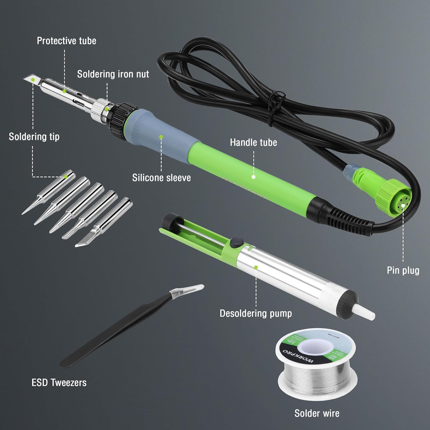 WORKPRO Soldering Station, 60W Soldering Iron Kit with Digital Display and 5 Extra Iron Tips, Precision Temperature Control Solder Station for Electronic Repair, DIY Enthusiasts and Jewelry Makers
