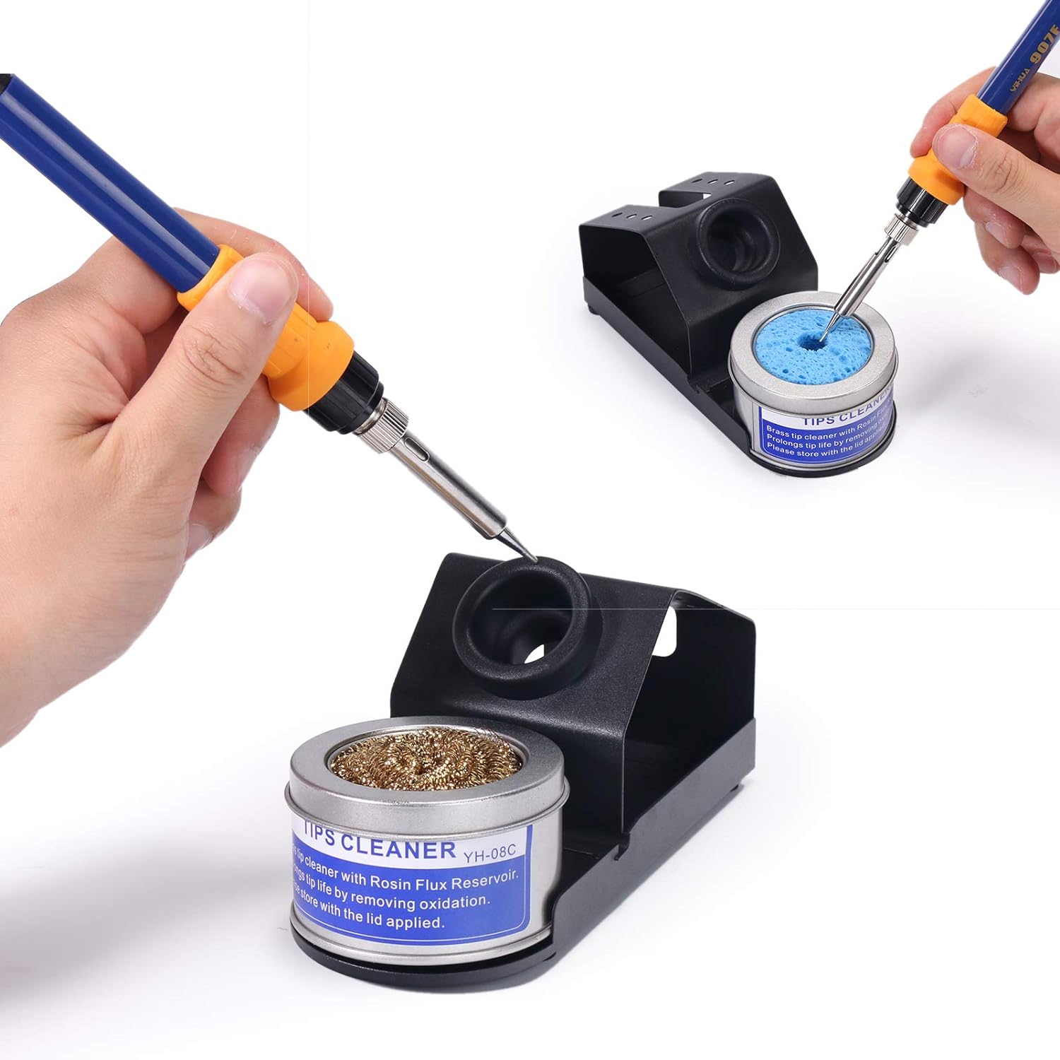 Metallic Build & Heat-Resistant Design: the Yihua 939D+’s control panel is built with Brushed Aluminum so that you won’t leave any burnt marks by accident. The accompanying stand-alone iron stand is also solid metal-alloy. You can put it anywhere and organize your workspace in the way you like.