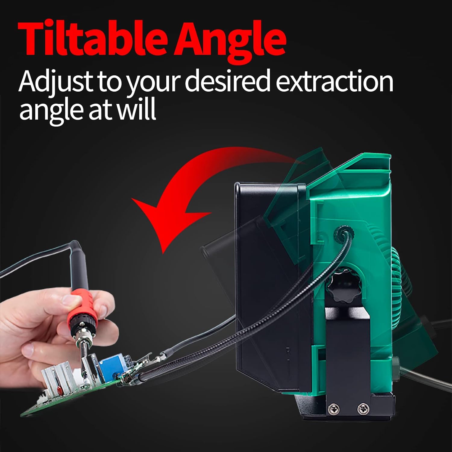 Tiltable Stand & Fenders – This fume extractor comes with a 30°-tiltable stand, allowing you to adjust the effective filtering areas according to needs. In addition, fenders on both sides can help reduce disruptive airflows and ensure effective fume extraction. Fumes generated within the straight-line distance of 10 cm can be adsorbed effectively.