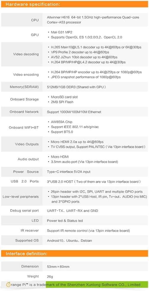 Orange Pi Zero2 adopts Allwinner H616 64-bit high-performance quad-core Cortex-A53 processor, the sbc has 1GB DDR3 memory specifications, Support 1000MB Network, Run Android 10,Ubuntu,Debian OS Single Board. Orange Pi Zero Expansion board Interface board Development board beyond Raspberry Pi.