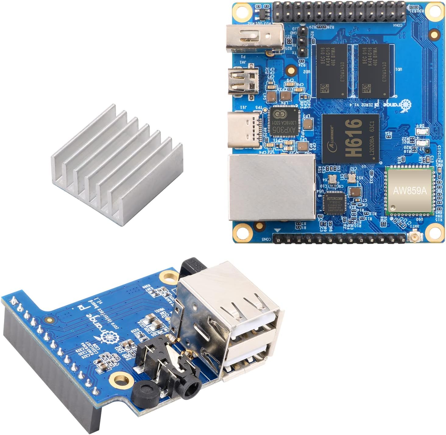 Zero 2, 1GB Allwinner H616 Quad Core 64 Bit Open-Source Microcontroller 1000M Ethernet Single Board Computer, Support Android10, Ubuntu, Debian (Zero 2 + Expansion Board + Al Heat Sink)